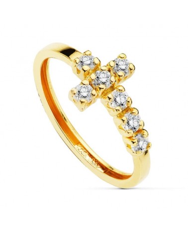 Anillo oro 18k cruz circonitas 8mm