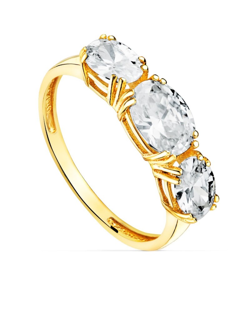 Anillo oro 18k tres circonitas ovales