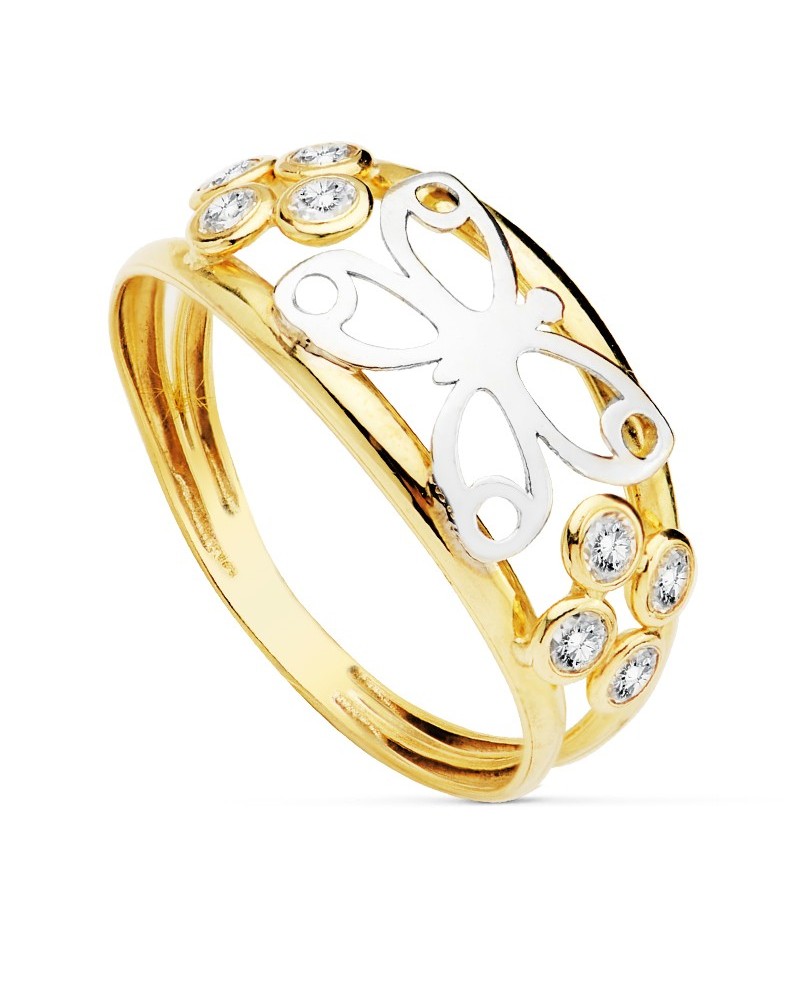 Anillo oro 18k bicolor mariposa calada circonitas 8,5mm