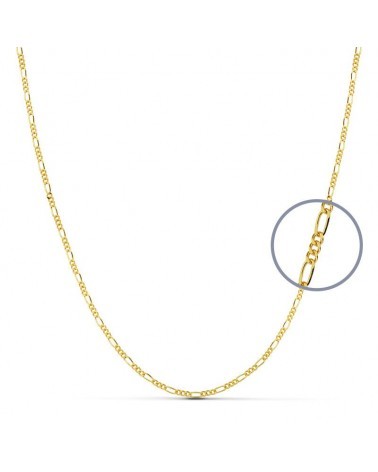 Cadena de oro de 18 kilates con un diseño de eslabones 3x1 y un largo de 50 cm. Es una cadena fina ya que tiene un ancho de 1,2 mm. Incluye una marca de contraste oficial 750 y sello de fabricante. Se entrega con estuche y toda la garantía de la joyería más antigua de España.