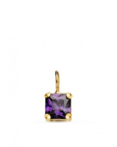 18K COLGANTE ORO AMARILLO CUADRADO CON GARRAS Y PIEDRA COLOR AMATISTA 5,5 X 5,5 MM.