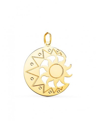 18K COLGANTE ORO AMARILLO DE LUNA CON SOL EN BRILLO 22 X 21MM