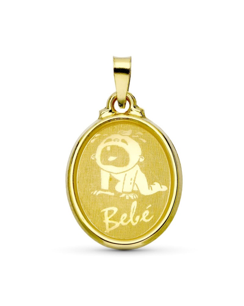 18K COLGANTE ORO AMARILLO LASER OVAL BEBE 22X15 MM