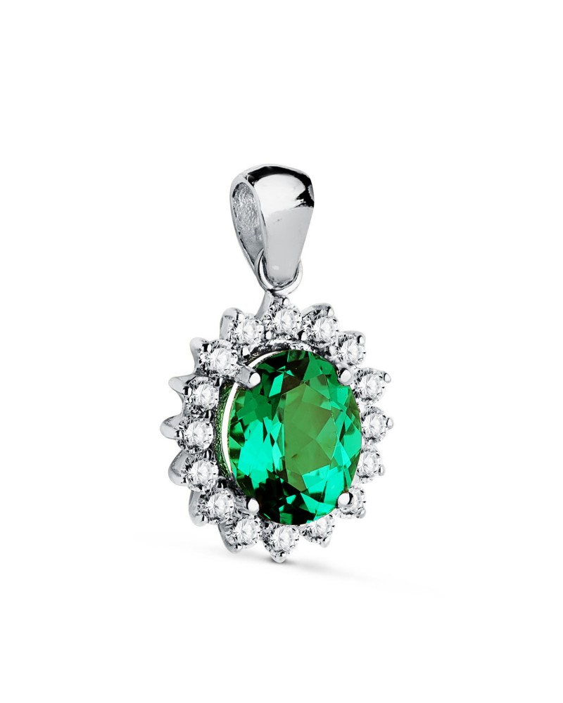 Colgante oro blanco 18k esmeralda recristalizada diamantes