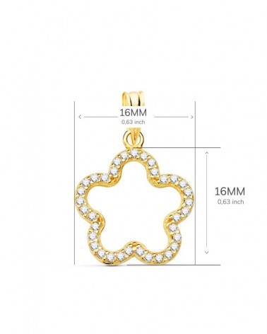 Colgante de oro de 18 kilates con una for y circonitas y un tamaño de 19x16mm