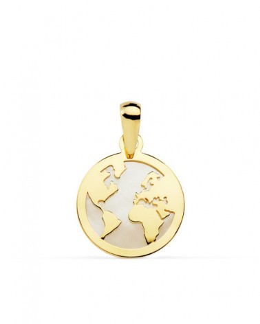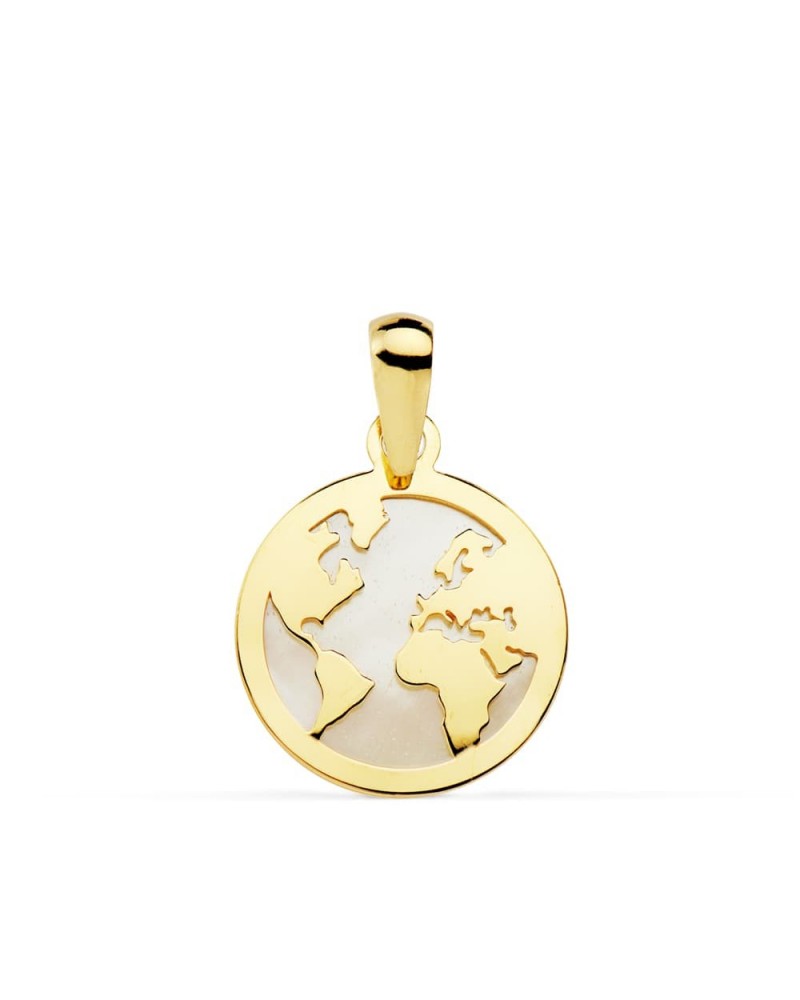 Colgante oro 18k mapamundi nácar 13 mm