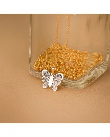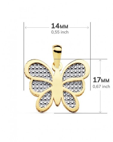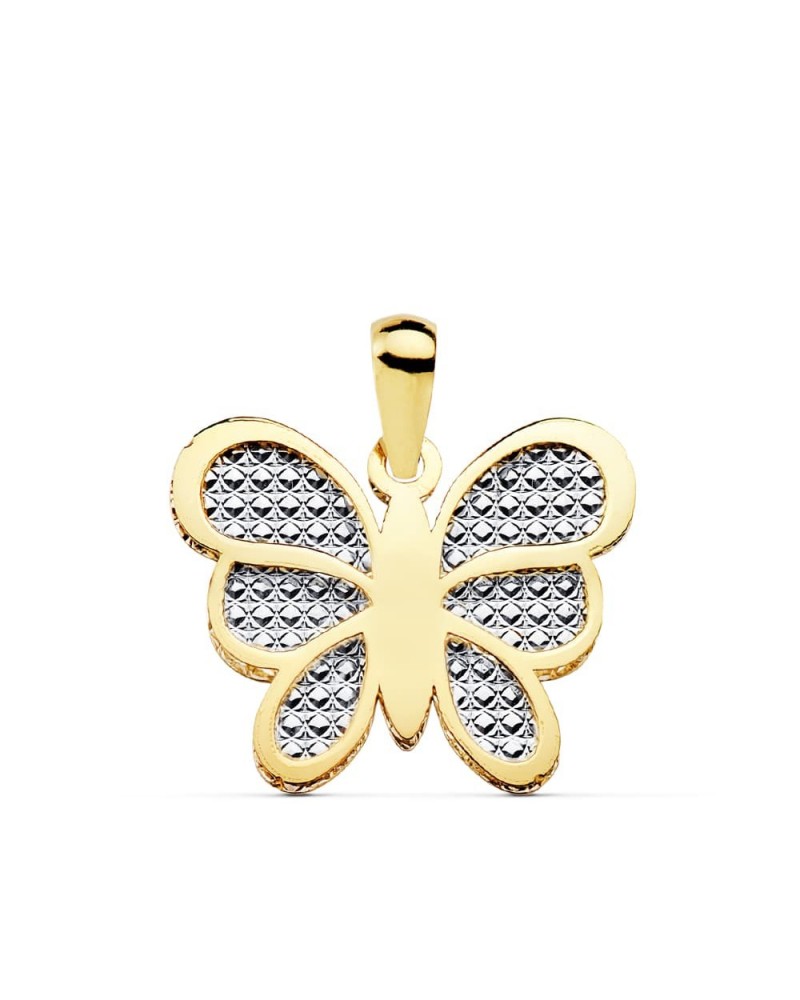 Colgante oro 18k bicolor mariposa tallado 17x14 mm
