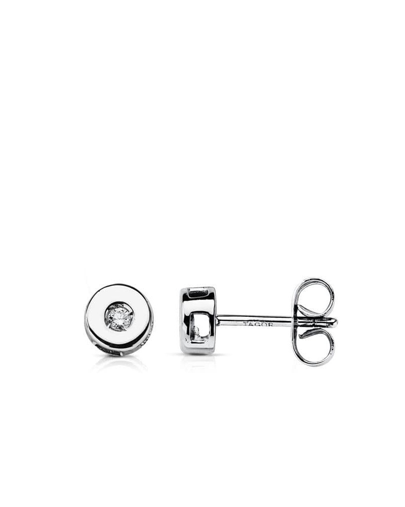 Fabricados en oro blanco de 18 quilates con diamante de laboratorio de 0,04 quilates, calidad VS2-G, talla brillante. Con un diámetro de 5 mm y peso aproximado de 1,7 gramos, incorporan cierre de presión que garantiza comodidad y seguridad en el uso diario. El diamante talla brillante maximiza la refracción de la luz.