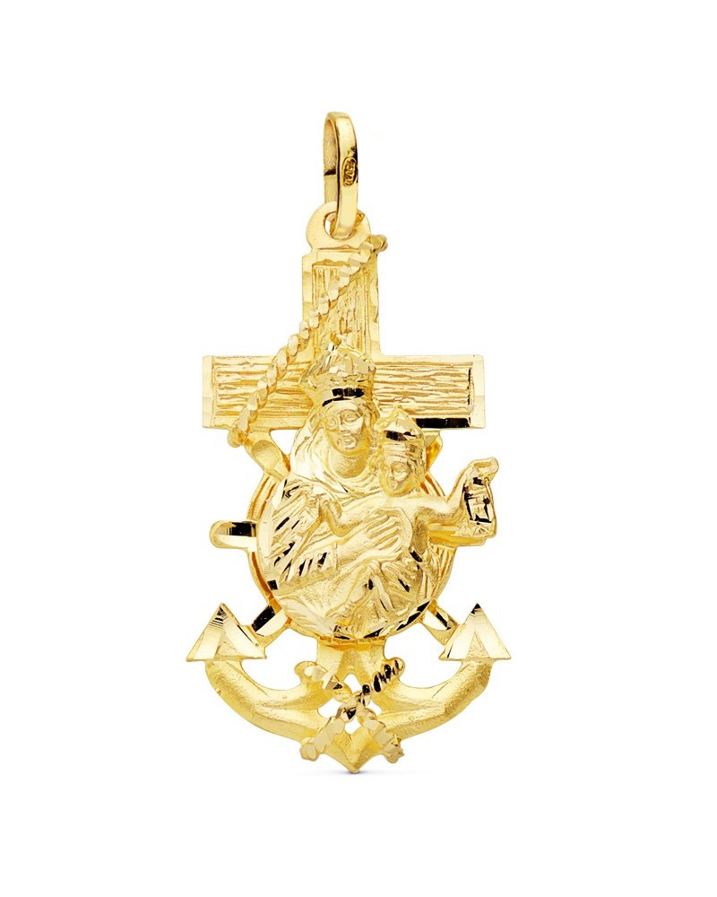 Cruz marinera oro 18k Virgen del Carmen 47x25mm