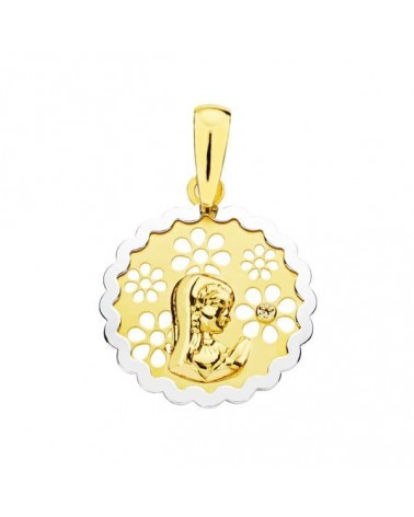 Medalla oro 18k bicolor Virgen Niña circonita 15mm