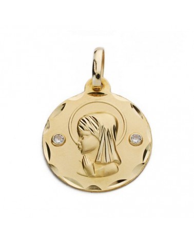 Medalla oro 18k Virgen Niña circonitas 18mm