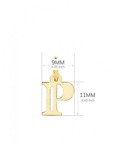 Inicial de oro amarillo de 18 kilates, letra P, con un tamaño de 11 x 9mm. El colgante forma parte de la colección de oro de Falomir Joyas, y se entrega con estuche y marca de contraste oficial.