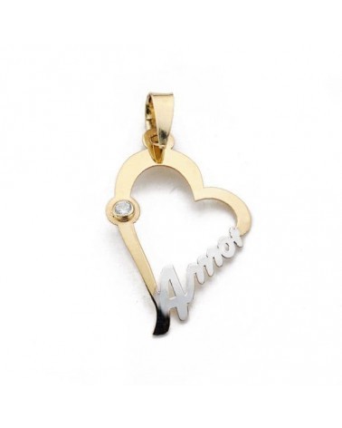 Colgante oro 9k bicolor corazón Amor circonita