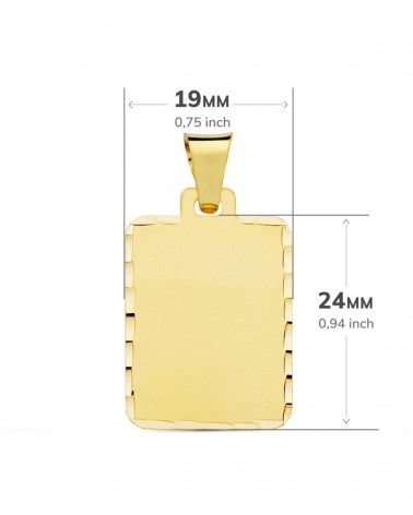 Chapa de oro de 18k con un tamaño de 24x19mm. Las chapas forman parte de la colección de oro de Falomir Joyas, y se entrega con estuche y marca de contraste oficial. *El precio que aparece no incluye ni grabado ni personalización.