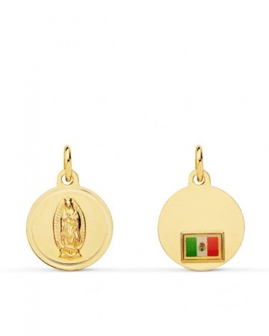 Medalla Virgen de Guadalupe con bandera de oro de 18k PM-P6068-114