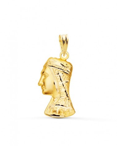 Medalla oro 9k Virgen Montserrat silueta tallada 21x12mm
