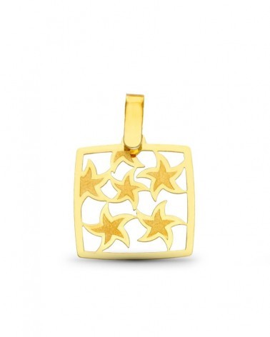 Colgante oro 18k amarillo cuadrado estrellas caladas
