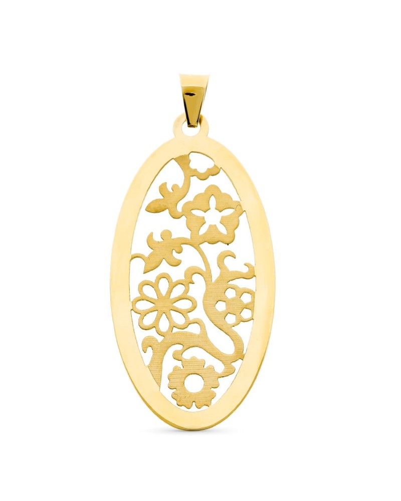 Colgante oro amarillo 18k oval calado motivos florales 3,88 gramo