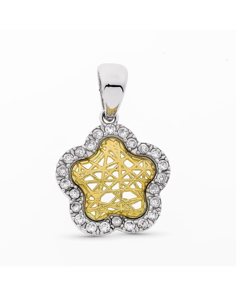 Colgante oro 18k bicolor flor calada circonitas 21x18mm