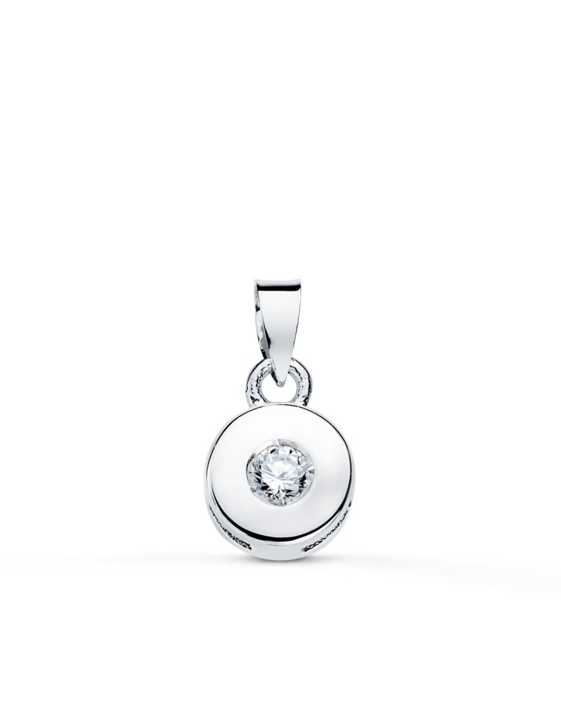 Este colgante de oro blanco de 18 quilates presenta un diseño circular minimalista y elegante, perfecto para el día a día o ocasiones especiales. Su acabado pulido refleja la luz de manera exquisita, mientras que el diamante natural en el centro se convierte en el protagonista absoluto de la pieza. El diseño en chatón protege la gema y le otorga una presencia destacada.