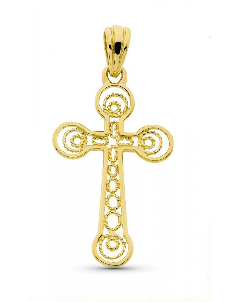 Cruz oro 18k amarillo filigrana sin Cristo 37x22mm