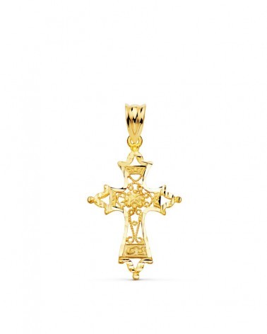 18K CRUZ ORO AMARILLO FILIGRANA BORDES TALLADOS. 30X20 MM