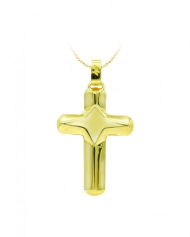 18K CRUZ ORO AMARILLO HUECA LISA 37X24 MM