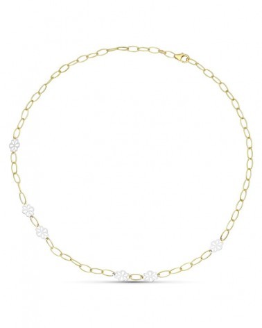 Gargantilla oro 18k bicolor eslabones flores 7,7g