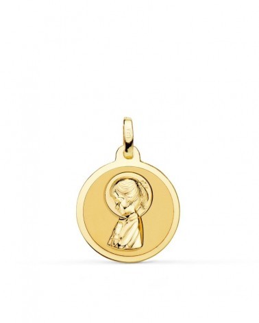 18K MEDALLA ORO AMARILLO VIRGEN REZANDO EN BRILLO 18 MM