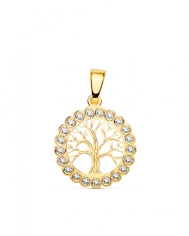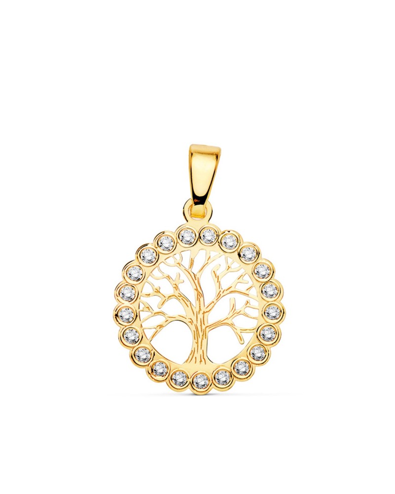 Colgante oro 18k árbol de la vida circonitas 15mm