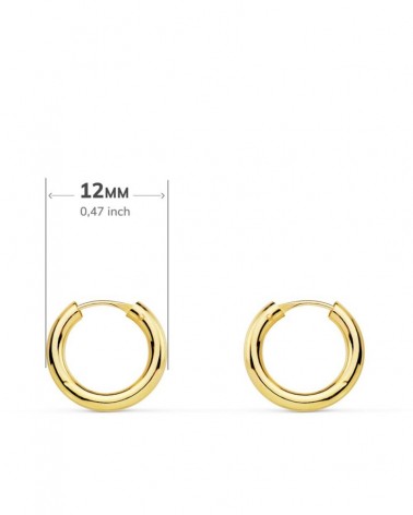 Aros redondos lisos y ligeros. El tamaño de los pendientes es de 12 x 2 mm. Estos pendientes forman parte de la colección de oro de Falomir Joyas, y se entrega con estuche y marca de contraste oficial.