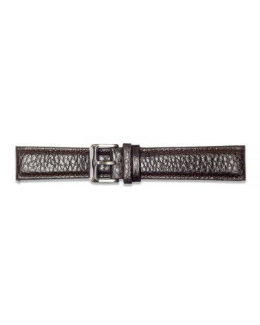 Así es esta correa de piel de 16 milímetros y, acabado en marrón oscuro.