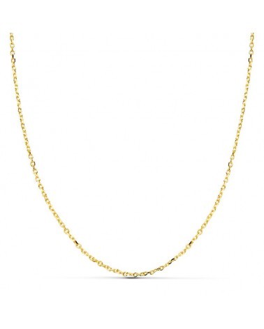 Cadena de oro de 18 kilates con un largo de 50 cm. Tiene un diseño conocido como "forzado". Es una cadena muy fina con 1,2 mm de ancho. Incluye una marca de contraste oficial 750 y sello de fabricante. Se entrega con estuche y toda la garantía de la joyería más antigua de España.