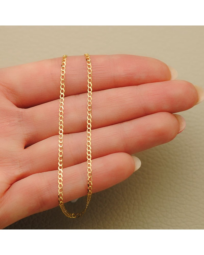 Esta elegante cadena barbada presenta el clásico eslabonado plano y alargado característico de este estilo tradicional. Su acabado en oro amarillo de 18 kilates le confiere un brillo cálido y natural, mientras que su construcción maciza garantiza durabilidad y resistencia al uso diario. El diseño limpio y atemporal la convierte en una pieza versátil que se adapta tanto a looks casuales como más formales.