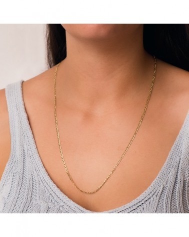 Cadena de oro amarillo de 18 quilates con eslabón plano estilo Cartier. Fabricación hueca que la hace más ligera y cómoda de llevar. Mide 60 cm de largo y tiene un peso aproximado de 3,7 gramos.