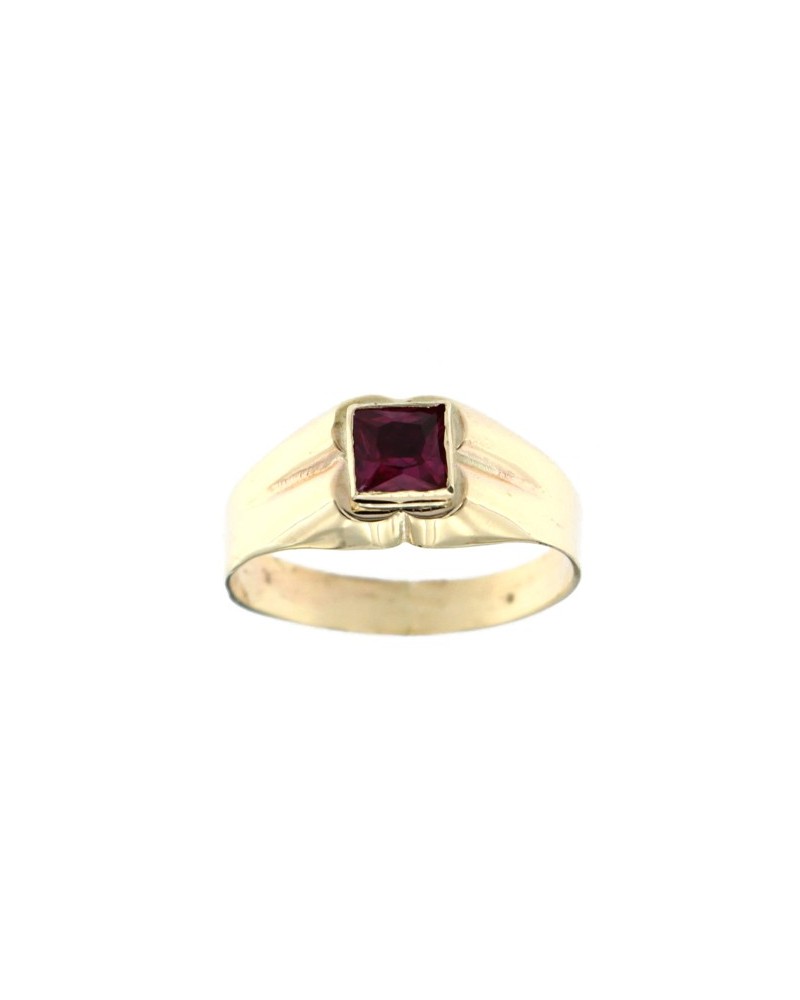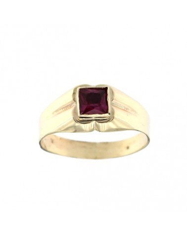 Sello oro 9k amarillo piedra roja cuadrada 4mm