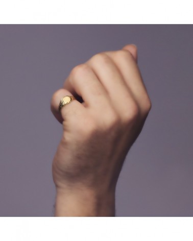 Sello de oro amarillo de 18 kilates ideal para niño en edad de comunión. Cadete macizo y tallado con un ancho de 9 mm. Este sello forma parte de la colección de oro de Falomir Joyas, y se entrega con estuche y marca de contraste oficial.