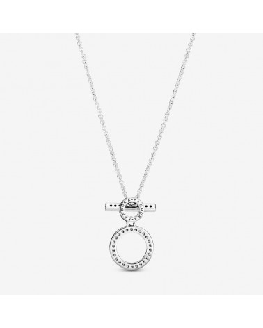Collarde la marca Pandora formado por dos círculos, uno mediano y otro más pequeño en la parte superior. Es un collar corto de 45 cm.