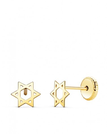 18K PENDIENTES ORO AMARILLO ESTRELLA DAVID LISA. 6 X 5,5 MM CIERRE TUERCA