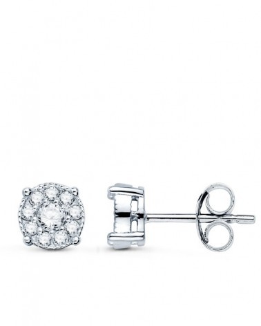18K PENDIENTES ORO BLANCO CHATON CON 20 DIAMANTES. 7X7 MM 0.365 QTS PRESION