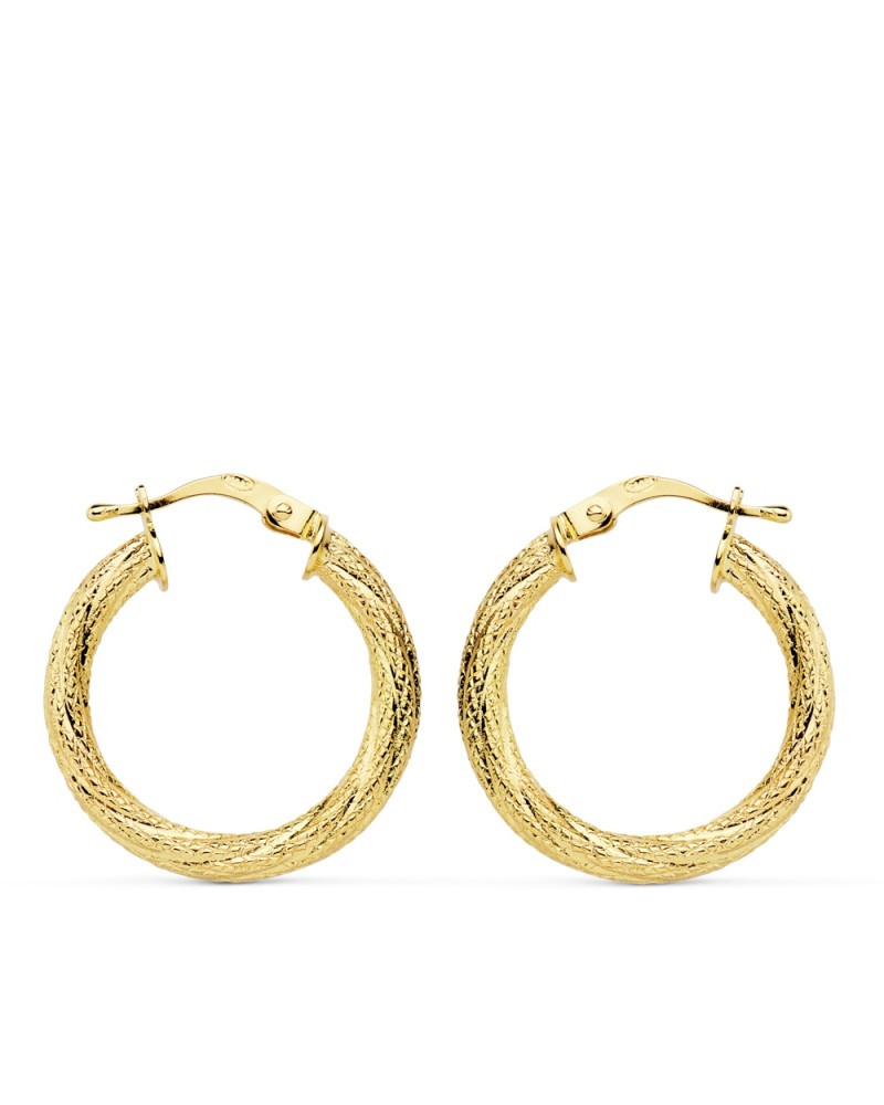 Aros oro 18k amarillo granillados 21mm