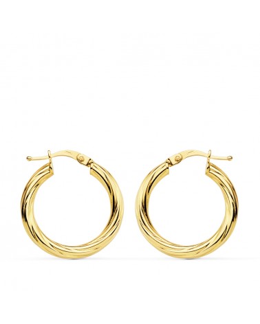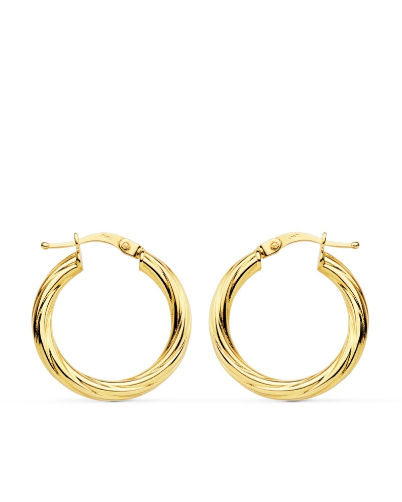 Fabricados en oro de 18 quilates (750 milésimas) con acabado brillo espejo, estos aros tienen un peso aproximado de 2,1 gramos y un diámetro de 21 mm. Su construcción hueca los hace ligeros y cómodos para el uso diario, mientras que el cierre de clip garantiza una sujeción segura y fácil colocación. Descubre más sobre aros de oro y tipos de cierre.
