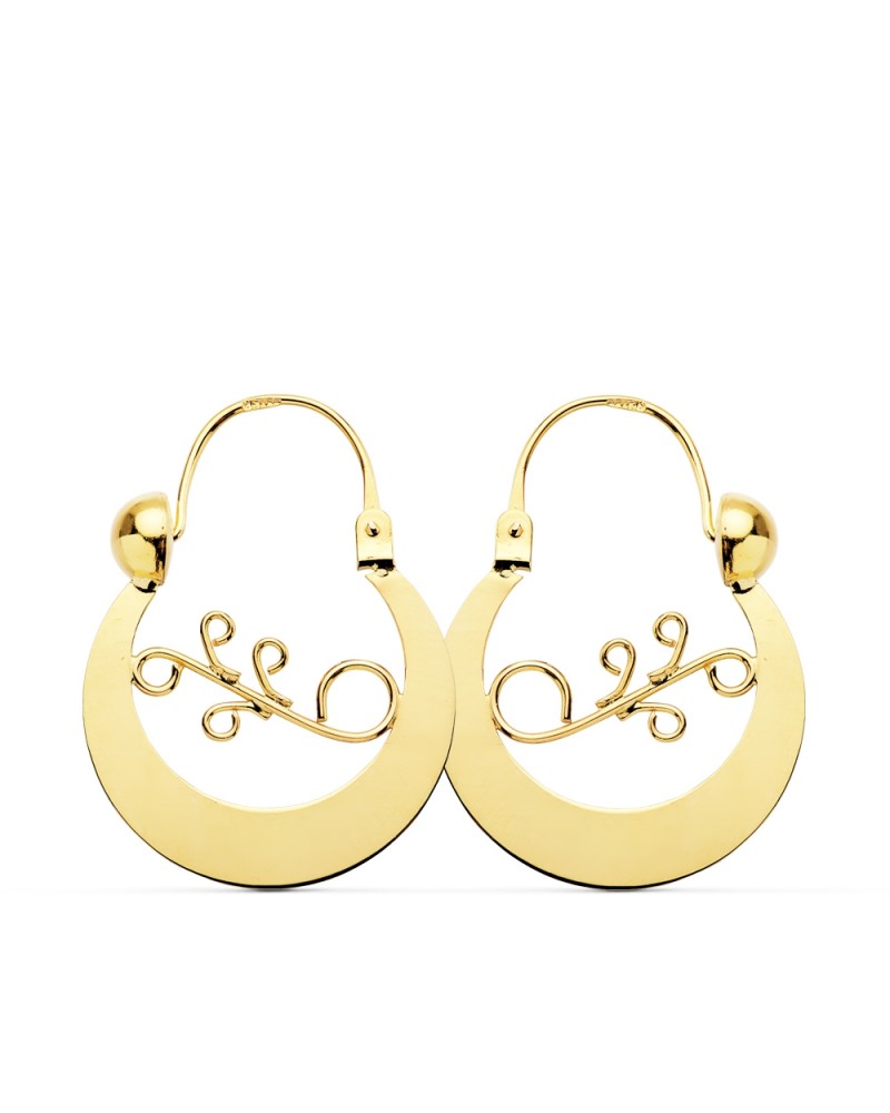 Aros oro 18k criollas diseño Canarias 27x20mm