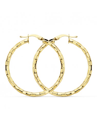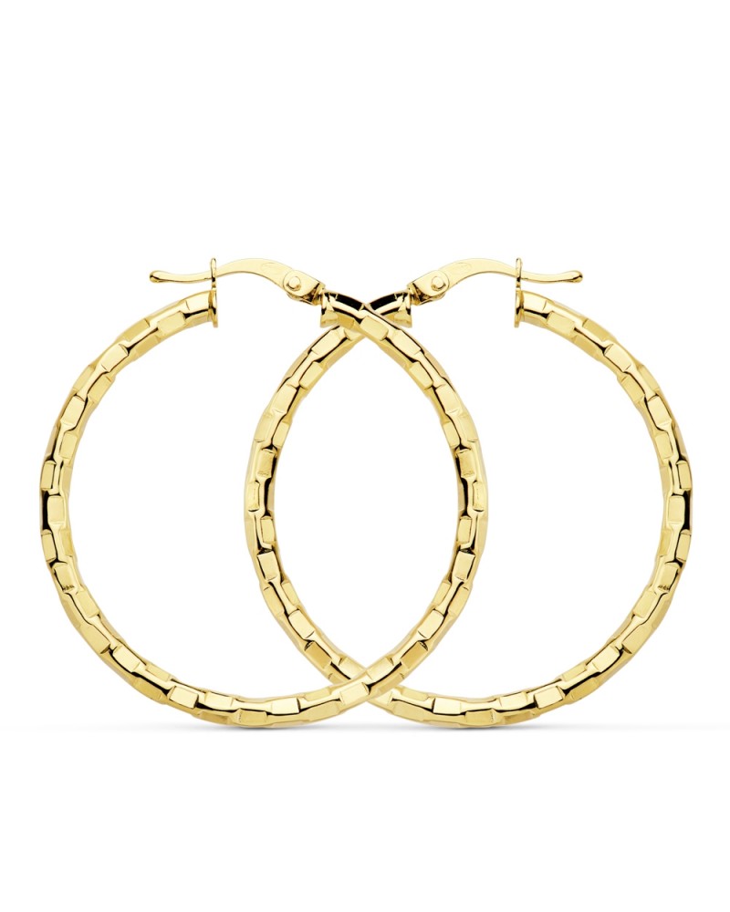 Aros oro 18k amarillo textura cuadrados 34mm