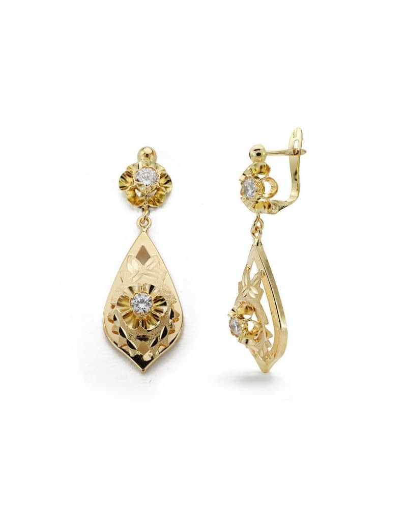 Pendientes oro amarillo 18k lapidado circonitas 31x11mm