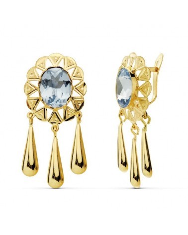 Pendientes oro 18k amarillo piedra azul oval lágrima 3,2 gramos