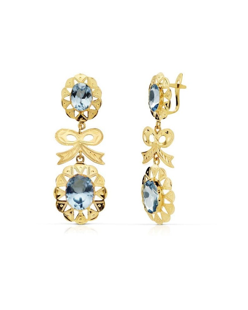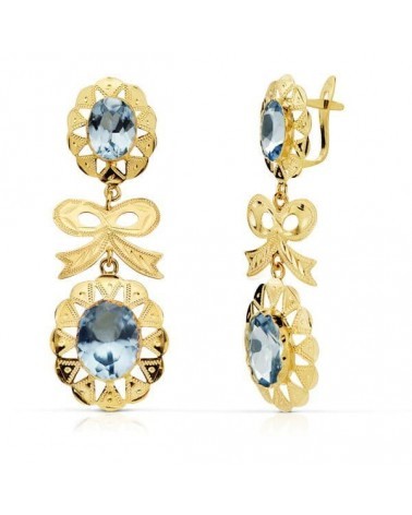 Pendientes oro 18k aguamarina lazo cubanos 43x15mm