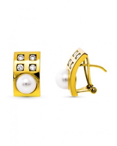 Pendientes oro amarillo 18k perla cultivada rectangular 15x9mm