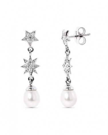 Pendientes oro blanco 18k estrellas circonita perla