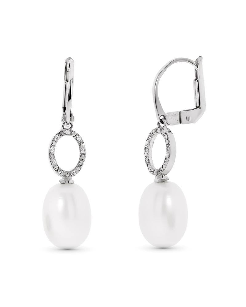 Fabricados en oro blanco de 18 quilates con acabado pulido, estos pendientes incluyen perlas de 9 mm y circonitas engastadas en el motivo oval superior. Su peso aproximado de 3,9 gramos los convierte en una opción cómoda para el uso diario. El cierre catalán garantiza una sujeción segura y un uso práctico.